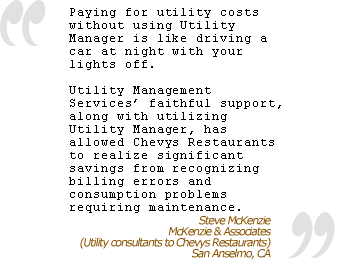 The Utility Manager is a remarkably powerful, yet easy to use utility accounting software package for Windows XP, Vista, Win 7, Win 8/8.1, or Win 10. The Energy Center is likewise powerful and user-friendly but is 100% web-based, accessible from any browser or mobile device. BOTH products help you store information about each of your sites, utility vendors, utility accounts, & utility bills. Data entry is made easy since templates can be customized to precisely match the layout you see on your bills.